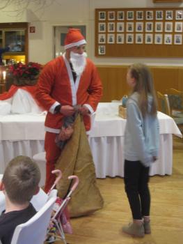 Nach einer kurzen Begrüßung durch unseren Hauptmann Thorsten Behrens, gab es mehrere Leckereien vom reich gedeckten Buffet. Auch warme Küche wurde geboten. Es ergaben sich mach gute Gespräche. Auch die mitgekommenen Kinder hatten ihren Spaß. Sie konnten jeder für sich ein Hexenhaus mit Süßigkeiten bekleben und dann mit nach Hause nehmen. Als weiterer Akt, lies sich sogar der Weihnachtsmann in unserer Runde blicken. Leider hatte er nicht für jeden etwas dabei. Denn wie sich bei genauerem Hinsehen herausstellte, hatte sein großer Sack ein Loch. Da müssen wohl einige Geschenke unterwegs verloren gegangen sein meinte er.