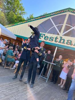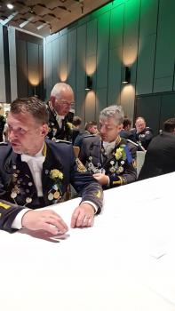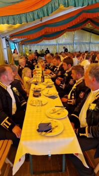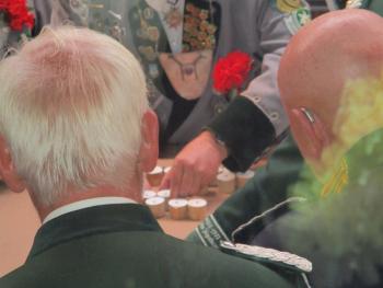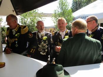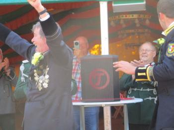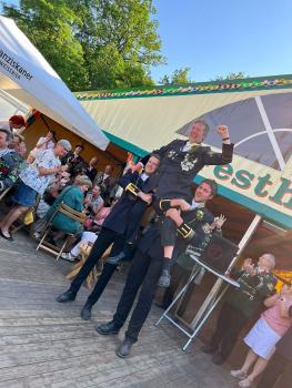 Am Nachmittag ging es zum traditionellen Königschießen auf den Schießstand. Wer dort den besten Schuss abgegeben hatte wurde vom Oberst auf dem Festplatz bekanntgegeben. Nach der Proklamation im Gildehaus stand fest, dass die Gardekompanie in diesem Jahr neue Königskompanie ist! Ihr stehen Norbert und Sylvia Melzer-Thamm als neues Majestätenpaar voran!